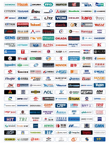 日韩企业:山崎马扎克、大隈、西铁城、津上、远州、三菱、沙迪克、北村、贝托、安川、兼松开吉开、斗山、威亚、韩国KCC、希枇思、特固克; 欧美企业:西门子、蔡司、翰默、卓勒、瓦尔特、斯图加特、旭斯勒、 罗思特 、优傲 、海克斯康、 亿孚、号恩、 易格斯、美国赫克、哈斯、瑞士托纳斯、意大利HITECO、普锐米勒、雷顿; 中国台湾企业:友嘉 、丽驰、福裕 、台中精机 、亚崴、永进、 高锋 、亿铨、 匠泽 、东台精机、 绮发、宝丽金、乔锋 、颖元 、程泰、百德、 匠泽、崴立、乔锋、富格兰、颖元、瀧鋒、格勒玛、颖汉、德扬、金中贸、御成、煜众、台牧、铁王、冈田; 行业龙头企业:北一、 纽威、海天精工、广州数控、精雕、海德曼、华东数控、杭机、豪特曼、戴杰、普拉迪、宁庆、润星、斌盛、鲁南、威达、永基、隆昌、巨冈、埃弗米、毅兴、佳盟子、明美、恒峰、精盾、金台、远程、凯博、庆鸿、台一、三光、东方数控、华方、安德建奇、凝华、塞维斯、潭兴、锯力煌、奥拓福、晨龙; 钣金激光顶尖企业:大族、华工、亚威、百超迪能、奔腾楚天、宏山、普睿玛、镭鸣、金威刻、锐捷、天辰、新天、宏牛、力星、唯拓、玛吉克、多维、创智、立为、飞速、铭族、锐科、创鑫、台励福、爱克、三环、瑞铁、埃锡尔、盛通、双赢、易锻、东海、创恒; 知名机器人企业:安川、斯图加特、广数、奥普瑞思、优傲、伯朗特、配天、钱江机器人、卡诺普、尔必地、软体、东佑达、金红鹰; 知名刀具、量具企业:泰柯洛、喜威一、特固克、三菱综合材料、骏河源、株钻、上量、哈量、河一工、松德、金鹭; 知名附件、功能部件企业:上银、南京工艺、博特精工、摩多利、龙创日盛、罗思特、GMN、IRSO飞梭、黑马赵; 知名的自动化企业:贝托、法斯顿、台达、众为兴、怡合达、祥银、海特、TBI、基恩士、劳易测、亚德客、海之晨、立邦达、新代、华兴; 等扎堆亮相,抢滩白热化。