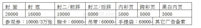 【大会会刊】 为了配合在展览期间宣传及让客户了解并在会后能与之沟通联系,组委会将精心编印会刊,规格:145mm×210mm.注:广告费用须全额一次付清,以付款先后顺序进行安排。