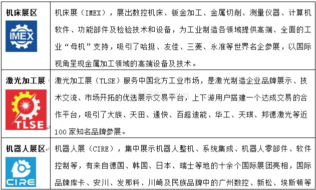 中央级媒体:光明日报、人民日报、新华社、CCTV、中国新闻社等; 主流财经媒体:中国证券报、上海证券报、证券时报、中国经济网等; 主流门户网站:新浪网、凤凰网、搜狐网、腾讯网、网易等; 行业媒体:金属加工在线、荣格传媒、弗戈传媒、机器人网、OFweek等; 区域媒体:天津电视台、滨海电视台、天津日报、今晚报、北方网等; 新媒体:今日头条、一点新闻、虎嗅新闻、澎湃新闻、H5页面等; 自媒体:展会官网、微信、微博、搜狐号、百家号、企鹅号等; 【对接活动】 天津工博会—参展商走进采购商工厂活动 天津工博会定期组织展商走进奥的斯、SEW、长城、空客等50余大型制造企业的生产工厂,为展商提供洞悉采购方生产采购需求、进入大型企业采购供应商库的机会。 天津工博会—采购对接会 2021年天津工博会现场将针对数控机床、工业机器人、汽车制造、激光加工等多个重点展示领域举办精准采购对接活动,邀请经理级以上采购决策人士出席,打造高端、精准采购对接会。 【会议活动】 中国智能制造产业峰会 天津工博会现场采购对接会 中国机器人集成应用大会 中国汽车装备与智能制造峰会 智能制造助推天津高端加工产业发展论坛 机床/机器人/激光等领域新技术新产品发布会 家具工厂生产技术及机械的智能化高峰论坛 关于融资租赁与促进实体经济发展论坛 二手设备市场发展论坛暨交易会 中国机器人集成应用大会 【展示范围】