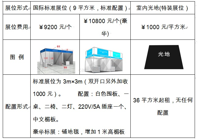 注1:免费及增值服务包括:会刊(免费刊登300字左右企业简介),参展商胸卡,定向组织观众,标准展台搭建(净地除外),展场清洁及保卫。 注2:参展单位将有关参展费用在报名后按合同约定汇入大会指定账号,并将银行汇款底单传真至承办单位;展位安排以“先申请、先付款、先分配、大面积展位优先安排”为原则;如未按合同约定按时付款者,所定展位主办方不予保留。 注3:会前两个月将展商信息发邮件或QQ至组委会,以便组委会及时将您的展品推送给用户,提前帮助参展商和买家更好地进行需求匹配。 注4:其他相关免费增值服务可来电咨询组委会或参阅参展手册、与会通知书。