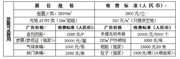 注意事项: 1、认真填写“参展报名表”,然后传真至主办单位。 2、收到“参展报名表”后,主办单位将向参展单位寄发付款通知。 3、参展单位需按付款通知的要求,于7天内交付展位费(标展付全款,特装付总额的50%订金以落实展位,余款于5月30日之前付清)。 4、展位分配实行“先申请、先付款、先分配”的原则。