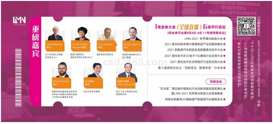 同期活动国际范,平行论坛都超赞 1、目前全球通行虽然仍处在封锁期间,但LASERFAIR的国际范仍旧颜值在线。LASERFAIR 2021不仅有德国巴登符腾堡州官方展团,还有立陶宛Optoman等国际企业强势入驻,更有诺贝尔奖得主、美国工程院院士全球直播世界激光制造大会。(附诺贝尔奖得主杰哈·莫罗邀请视频号) 2、LASERFAIR 2021现场配套了高规格主题论坛,六场平行论坛覆盖新能源汽车制造、高能量激光、3C 电子/5G 通信、生物医疗技术、工业互联网、投融资等应用场景领域,内容巨巨巨丰富!!!(排版附会议议程)