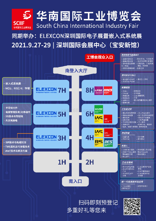 此外,主办方联合广东省仪器仪表学会今年特别策划的测试测量展区将在4号馆亮相。展区涵盖测试测量仪器仪表、汽车测试测量、红外热成像、通信测试测量、传感器测量等五大板块,吸引了优利德、福禄克、聚茂源、鼎阳科技、日置、高德红外、艾虹科电子、航裕电源、胜利仪器、众仪电测、日臻尚勤、艾普斯电源、德肯电子、睿光电、汉研电子、海康微影、恩智测控、科欣仪器、优择电气、爱普泰科、德明仪表、燊沙电子、鑫泰仪器、欧普士等测试测量仪器仪表厂商展示创新产品与技术。 ELEXCON深圳国际电子展暨嵌入式系统展 同期举办的ELEXCON深圳国际电子展暨嵌入式系统展位于3、5、7号馆,将以“智能世界从这里起步!迈向智能设计-先进封测-供应链升级-生态圈”为主题,聚焦展示5G、物联网、边缘AI、国产芯片、RISC-V、嵌入式系统、TWS及可穿戴技术、SiP与先进封测、自动驾驶与车联网、共享充换电技术、第三代半导体等技术新品和方案。展览规模达60,000平方米,届时将汇聚600+国内外优质展商,现场举办20多场高峰论坛,全力打造覆盖中国电子工程师与嵌入式开发者的年度嘉年华。其中,“2021年中国嵌入式技术大会”将聚焦嵌入式AI、RISC-V、物联网、OS、电机驱动与控制、国产MCU六大热门话题展开讨论。“2021工业数字化技术创新论坛——数字孪生、低代码、开放自动化、TSN、工业互联”还将邀请到施耐德电气、贝加莱工业自动化、库卡机器人等重磅企业大咖一起探讨工业数字化发展。 五洲工业发展论坛