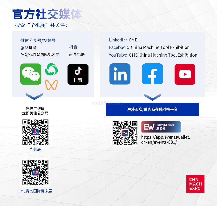 -02- 80天超级推广 助力产业流量曝光 在QME惊雷超级计划中,有两大亮点值得所有行业伙伴关注: 01-赋予展商“疫情千万补贴(参加2022届,补贴2023届同等展位面积)+三怕三诺参展保障”计划 02-数字化80天超级推广,提供超高流量曝光,助力企业品牌与展品推广 80天超级推广: 整合华机展“爆品推广”营销模式,集结百余款爆品,利用图文及短视频等新媒体传播形式,将制造企业核心品牌理念及产品优势重点突出,在华机展260+万机床制造用户体系和各大主流平台中精准投放,构建超高流量带货通道助力品牌推广及采供对接。 平台覆盖: