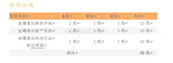评分基本原则 “2022中国激光金耀奖”设三大类参评项目,即:新技术、新产品和新应用,分别评选出在技术或应用上极具前瞻性、创新性和行业驱动性的面向激光制造未来的作品,为了做好本届“激光金耀奖”评奖工作,特制定评奖办法。 本着以“公平、公正、公开”的原则做好评奖工作,采取网上观众评选和专家评议相结合,最终评审结果须在有关媒体上予以公示后,颁发获奖证书。