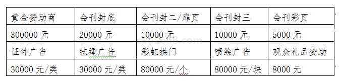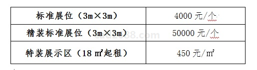 收费标准 展位标准收费: