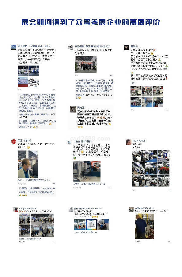 2024第43届无锡太湖国际机床及智能工业装备产业博览会 时间:2024年3月13—16日 地点:无锡太湖国际博览中心(贡湖大道与震泽路交叉路口) 一、展会介绍 经过多年的积累,无锡太湖机床展已拥有海内外190万装备制造业买家大数据,累计成交额近83亿元,为海内外展商与专业用户搭建了一个采购洽谈、技术交流的平台。经过二十多年的发展,无锡太湖机床展会在专业化、品牌化、国际化方面都有了质的飞跃。全面升级为:无锡太湖国际智能装备产业博览会。本届展会总展出面积达5万平方米,汇聚国内外600余家优质参展商,预计来自近20个国家的采购团和全国各省区市近4万人的专业买家参观展会。 l 发挥地域优势推动产业发展 无锡太湖机床展已经举办了42届,已成为长三角地区专业性强、展示设备高端、极具影响力的机床行业盛会。展会影响力波及长三角、珠三角等国内装备制造业发达区域,深受海内外制造业、设备用户的关注和支持。长三角经济区作为国内重要的高端装备研发、设计和制造基地,已成为国内装备制造业最大的集聚区之一! 作为举办地的太湖之滨无锡在长三角区装备制造业中占承载着重要使命。无锡制造业的技术创新改革与规模转型同步,榜样引领工业集群优化布局,稳步推进万亿产业链升级,重点培育战略新兴产业,强力塑造长三角区域的经济全产业链。 目前,华为、阿里巴巴、腾讯、中电海康等一大批高科技企业在无锡有较大数额投资。这些产业都代表了国内甚至世界级的先进制造水平,具备较强的“前瞻性”,众多的产业优势,极大推动了无锡的经济发展。 l 加大宣传力度权威媒体报道 为切实提高展会的影响力,主办方今年特别注重加大对宣传工作的投入,采取线上网络宣传+线下户外多渠道全方位的宣传战略。在展前、展中、展后全方位宣传展会及展商,有效提高展商企业品牌知名度,帮助展商抢占行业营销先机。 目前,线上的推广主要通过关键词(无锡机床展、太湖机床展等)、分类、兴趣等多个维度在百度新闻、360、微信朋友圈、抖音、今日头条、搜狐、网易、腾讯等手机客户端进行搜素,推广针对性强,带来更多专业观众流量。官方网站及时更新展会内容,帮助观众在线快速获取展商及展品信息;搜索微信公众号:“太湖机床展”,观众可在线了解展会最新动态;同时,主办方通过邮件群发系统、电话邀请小组全天轰炸式邀请专业观众到会参观,利用新媒体等多种营销手段大面积集中式撒网宣传。 通过多年的积累,再加上网络的宣传,无锡太湖机床展已经有庞大的数据库,展会前一对一的邀请专业观众到场,确保展会的效果和人流量。 线下推广也十分给力,具体有:高速高炮广告、宣传横幅、喷绘广告、空飘气球广告、出租车公交车身广告等户外广告已铺满了无锡周边高速公路及无锡市区主干道等重点场所;目前也在《工具商情》、《机床与装备》、《CNC刀具世界》、《机床工具制造业》等50多家专业媒体杂志和《上海机械网》、《中国金属加工在线网》、《机电在线》、《中国塑料模具网》、《国际模具网》、《悉恩悉机床网》、《国际金属加工网》、《中国机床商务网》、《中国机床信息网》、《中国机床网》等500多家专业网站媒体、微博、独立强大的观众微信平台等定时推广以及无锡电视台、无锡广播电台等大众媒体对展会进行密集宣传。 各式各样的途径可谓是线上线下紧密结合的全方位、高覆盖、高精度的宣传方式,主办方此次“放大招”,就是为了让本届无锡太湖机床展的影响力迅速扩散,吸引更多专业观众登记参观。 上届回顾 上届展会共吸引了来自中国、德国、美国、日本、意大利、瑞士、英国、韩国、中国台湾地区等12个国家和地区机床工具行业制造商参展:瑞士费尔曼、德国Heller、德国格劳博、德国马尔、德国蔡司、日本马扎克、日本津上、韩国迪恩、韩国优技因特、意大利VlGEL、美国哈挺、台湾友嘉、台湾缙錩、台湾立扬、台湾丽伟、沈阳股份、北京迪蒙、大连机床、海天精工、天水星火、山东蒂德、南通国盛、霏鸿智能、国强道生、上海西格码、南京新浙、金米兰、创胜特尔、云南壹机、云南CY、杭叉集团、尔必地、金红鹰、玉环涌高、云南云机、建福集团等500多家国内外知名厂商参展。 上千款引领时代尖端科技的智能化工业装备和核心功能部件,自动化生产线等精彩呈献,开展首日吸引江浙沪皖1万多人参观。三天的展会国内外50000余人次专业观众莅临参观,观众数量取得了大幅增长,专业买家较上届增长了20% ,展会从真正意义上为展商及观众打造了一站式服务。展商满意度90%,观众满意度95%;85%的参展商表示会再次参展;95%的观众表示会再次参观展会。 二、主办单位 中国机电产品流通协会 无锡市人民政府 无锡市机床工具行业协会 江苏三角洲国际会展(集团)有限公司 u 支持单位 无锡市人民政府 无锡市机械资产经营有限公司 江苏双良集团有限公司 中国机床总公司 无锡海外交流协会 一汽无锡柴油机厂 江苏省机床工具协会 无锡威孚集团有限公司 无锡压缩机股份有限公司 中国机械工业供销协会 江苏远东集团有限公司 无锡压缩机股份有限公司 无锡海外交流协会 江阴模塑集团有限公司 一汽客车无锡汽车厂 无锡威克集团有限公司 一汽无锡油泵油嘴研究所 无锡市模具工业协会 无锡