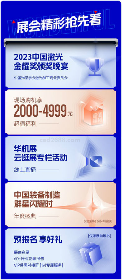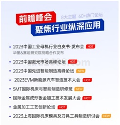 前瞻峰会:聚焦行业纵深应用 2023华机展·上海立足中国工业母机行业纵深应用,锚定智能制造、激光产业、新能源汽车、钣金加工、模具刀具、金属材料、工厂数字化升级等8大主题,隆重举办60+热门会议论坛。年度盛典、行业报告、白皮书发布,稀缺的行业资源汇聚于一处,为企业战略发展指明方向,为制造业未来奔腾点亮明灯。