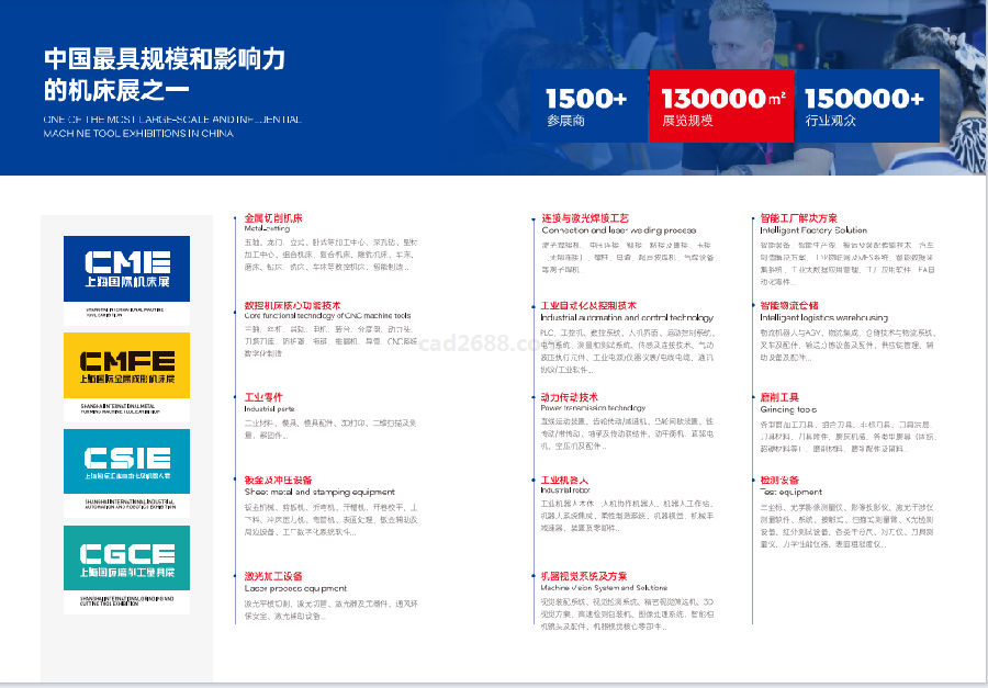 四大主题展区全新亮相 CME上海国际机床展 CMEF上海国际金属成型展 CSIE上海国际自动化及机器人展 CGCE上海国际磨削工量具展