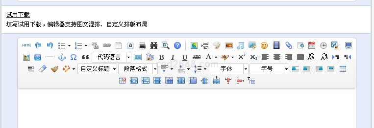 22、试用下载:用来上传可下载的试用数据包,点击附件上传即可;