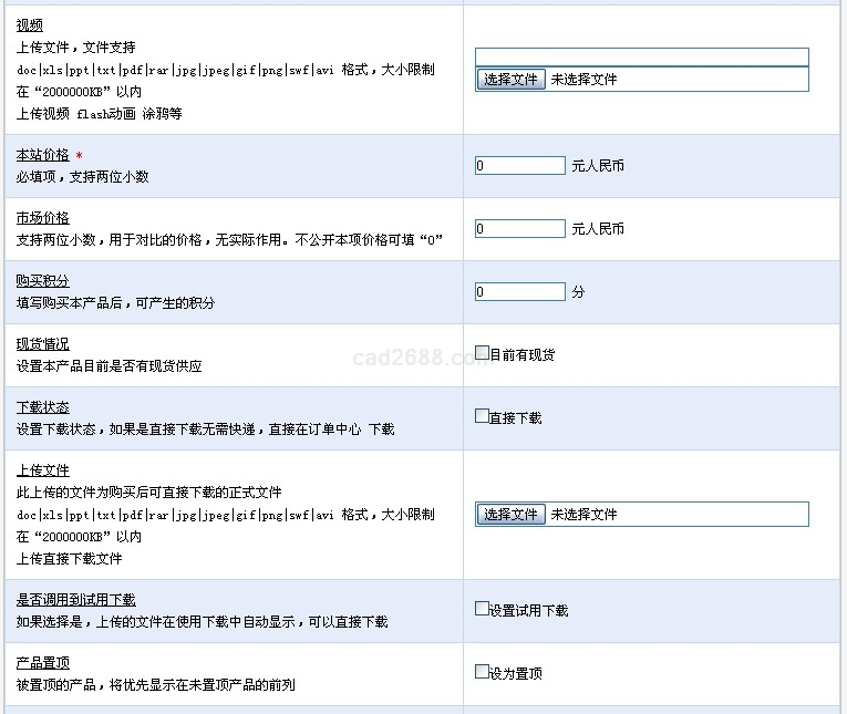 15、上传文件:用来上传买家下载的数据包,如果销售的产品下载即可,必填;