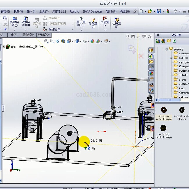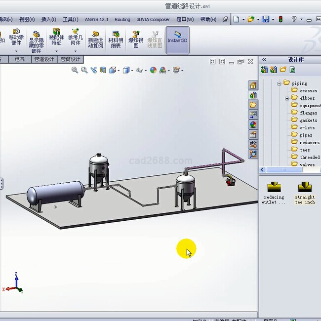 Solidworks管道线路设计范例和视频截图及文件如下: