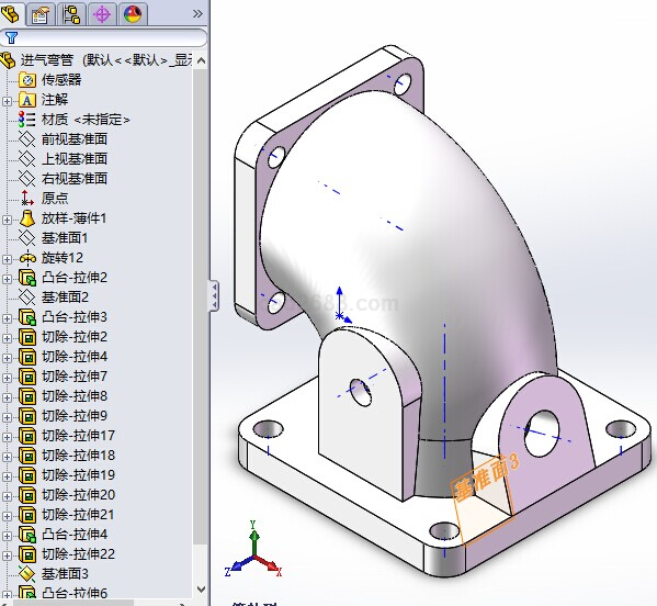 本产品为0元购产品,注册会员后,即可免费购买0元购产品下载!发动机进气弯管Solidworks模型如下: