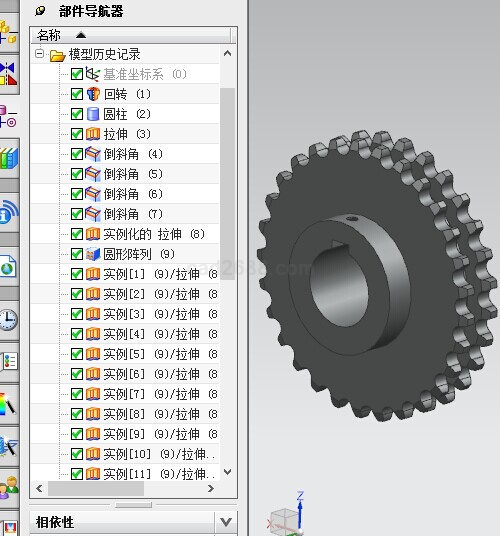 此模型为双排链轮,齿数29,节距12.7,配08A双排链条,双排链轮UG模型如下: