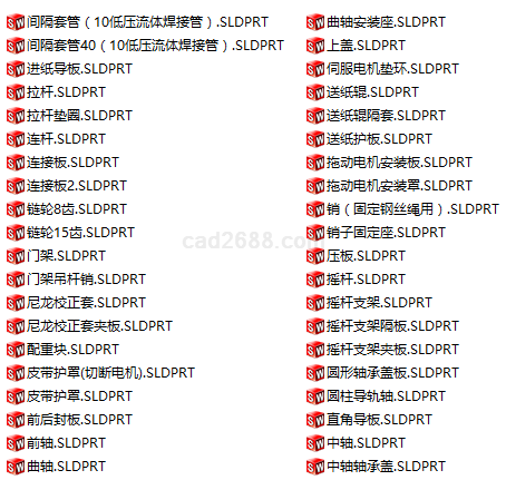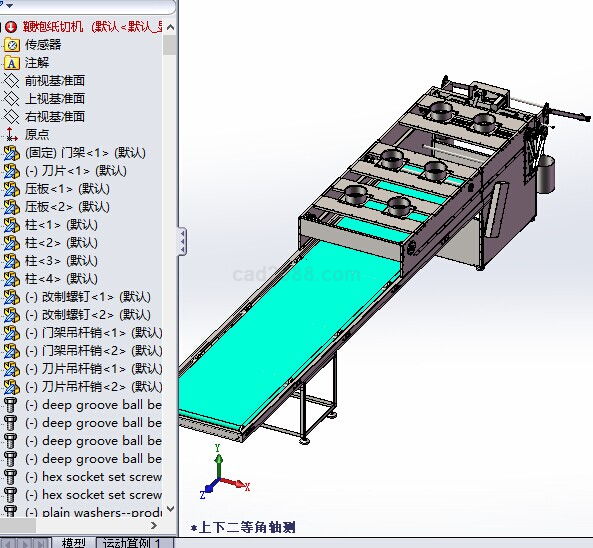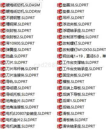 该模型包含1个装配体和193个零件图,鞭炮切纸机Solidworks模型如下: