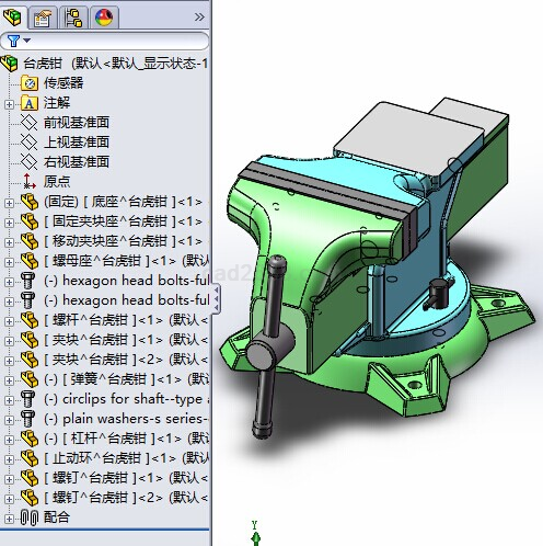 测绘通用台虎钳,带参数,带配合,台虎钳Solidworks模型如下: