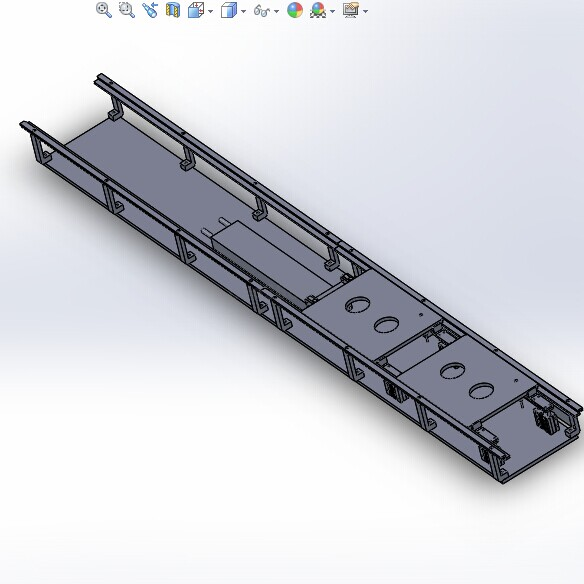 在托盘传送中使用带导杆气缸和止回组件的间距进给示例,左右使用2个止回挡块。托盘传送设备Solidworks模型如下: