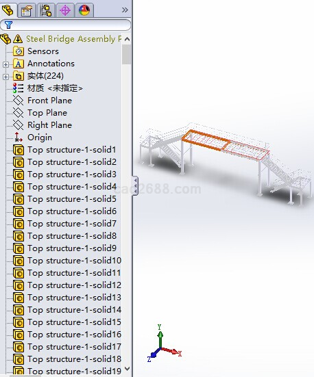 钢构人行天桥Solidworks模型如下: