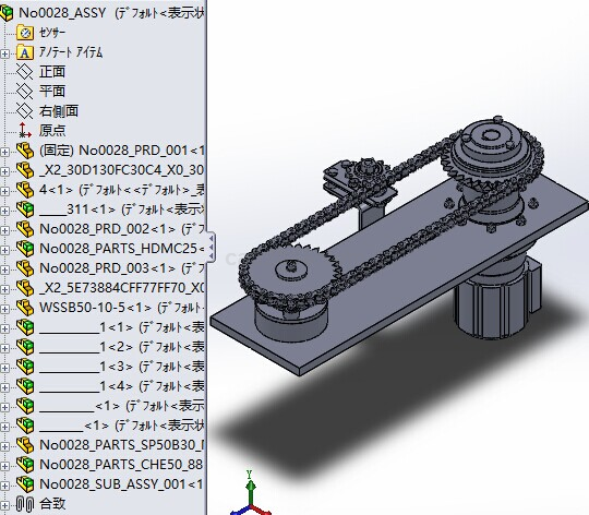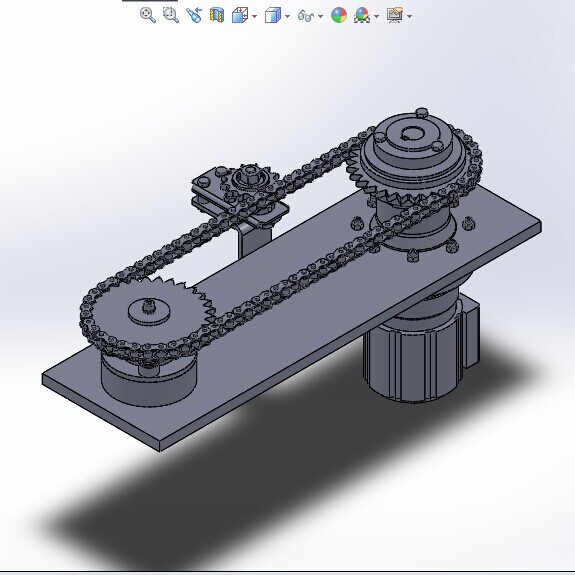 链条驱动机构驱动链条&张力调整器的组合示例,链条驱动机构Solidworks模型如下: