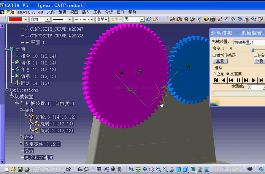 CATIA齿轮仿真运动不但视频清晰,而且有标准配音。CATIA齿轮仿真运动包括的文件及部分截图如下:
