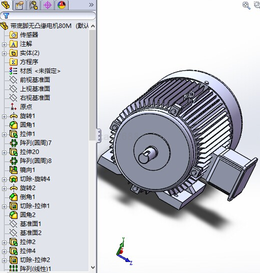 带底脚无凸缘电机80MSolidworks模型如下: