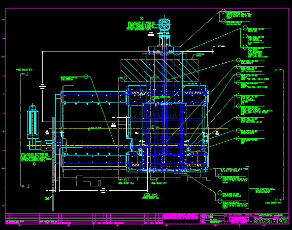 十字滑台是指由两组直线滑台的按照X轴方向和Y轴方向组合而成的组合滑台,通常也称为坐标轴滑台、XY轴滑台。十字滑台装配图CAD图纸如下: