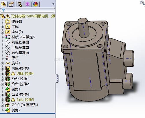 无制动器750W伺服电机Solidworks模型如下:
