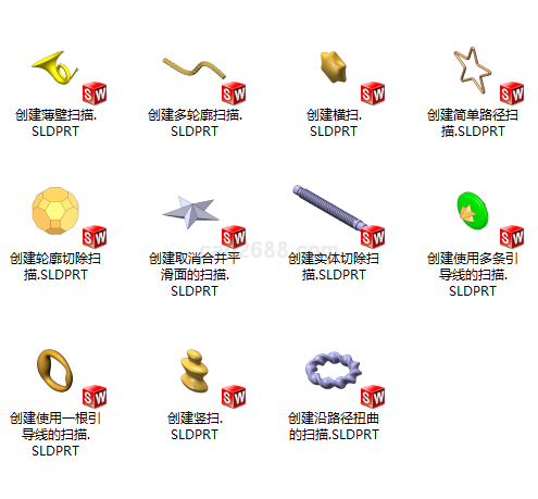 SolidWorks自学视频基础教程第4章扫描和切除扫描特征包括的内容如下: