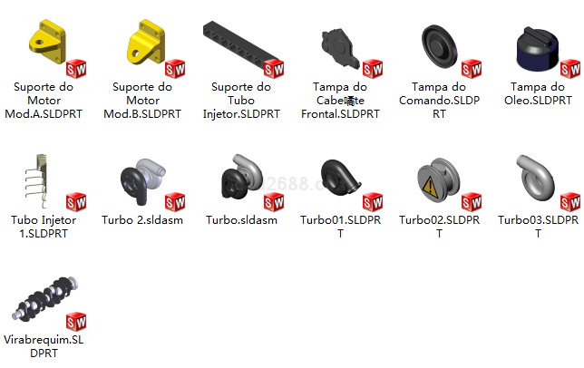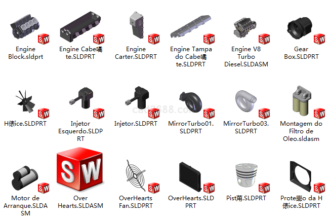 V8涡轮增压柴油引擎模型Solidworks格式模型如下: