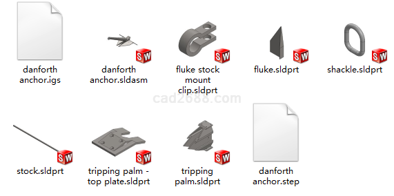 丹福斯福禄克式锚模型Solidworks模型如下: