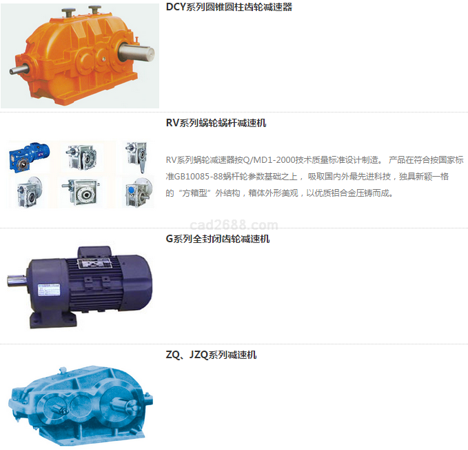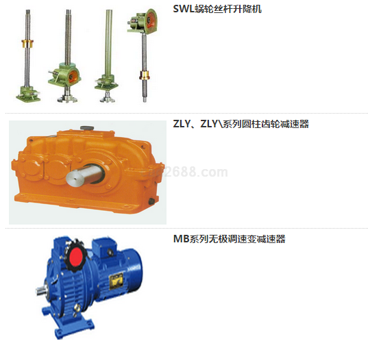 减速机产品:X、B、BJ、JXJ系列摆线针轮行星减速机; R系列减速机、S系列减速机、K系列减速机、F系列减速机、WB系列微型摆线针轮行星减速机;MB系列机械无级变速机;RV系列中空轴型涡轮减速机;FW系列\塑料挤出机专用减速机,ZDY、ZLY、ZSY、ZFY、DBY、DCY、DBYK、DCYK、ZQ、ZQH、ZQSH、ZSH、ZSSH、ZZJ、ZHD等硬齿面圆柱齿轮减速器,MBY、JDX系列边缘传动磨机减速器、电动滚动筒及其它非标件产品。