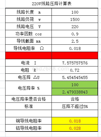 电缆压降计算内容如下: