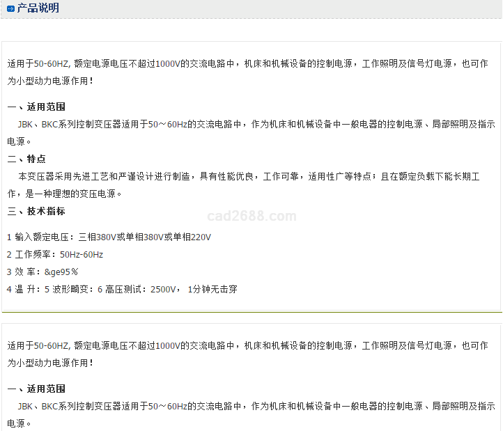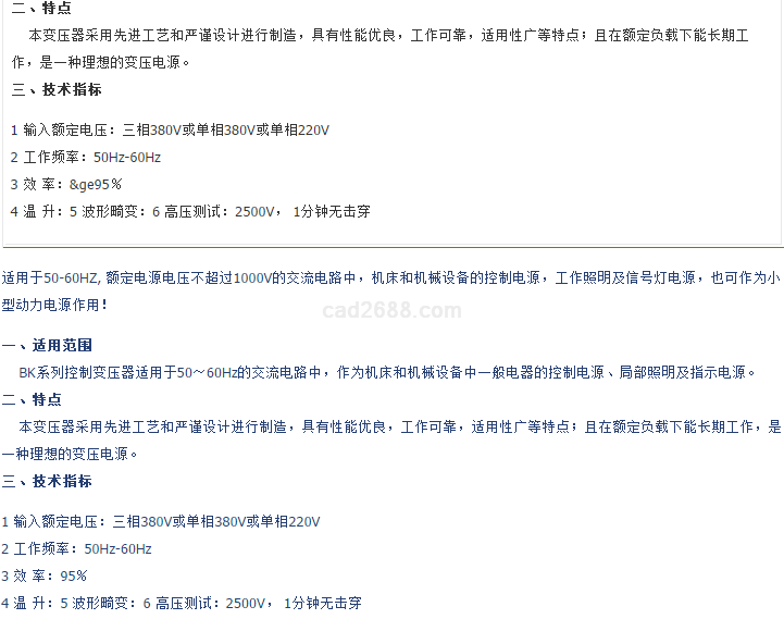 上海康奔电源设备制造有限公司变压器产品样本内容如下: