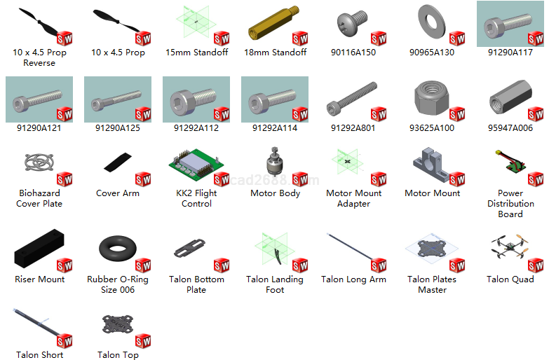 四旋翼飞行器Solidworks格式模型如下: