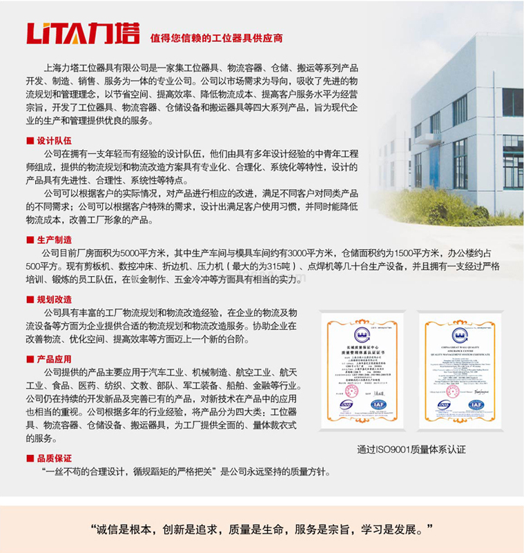 上海力塔工位器具有限公司工位储物设备产品样本内容如下: