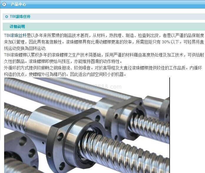 公司与国内外其它的厂家建立了良好的商务合作关系,公司除自己生产滚珠螺杆副以外还主要经营代理日本NSK滚珠丝杠副,日本THK滚珠丝杠副,日本IKO滚珠丝杠副,德国INA滚珠丝杠副,韩国SBC丝杠副,并且代理台湾HIWIN、PMI、TBI等几大品牌的滚珠丝杠副。