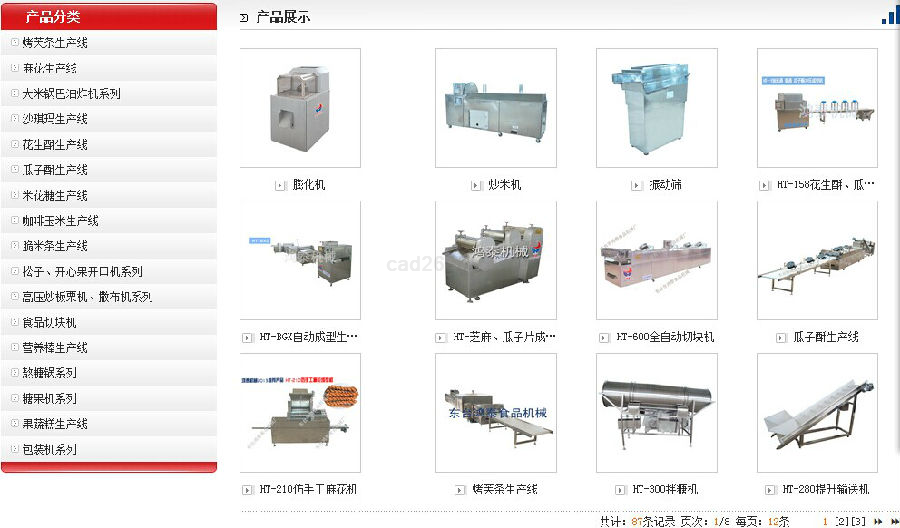 果蔬糕成套设备系列、粗杂粮生产线系列、大型气流膨化机、咖啡玉米生产线。