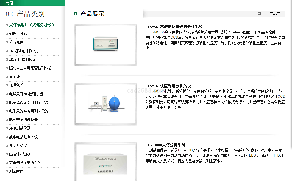 经过十多年的不懈追求,公司产品已得到不断提升和完善。产品包括常用测光测色检测仪器、照明行业专用检测仪器、LED专用检测仪器、灯具专用检测仪器、电子镇流器专用检测仪器、电磁兼容专用检测仪器、电气安全专用检测仪器、各类电参数检测仪器、检测用高性能交直流电源等。