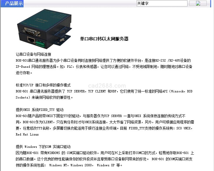 博科未来科技于2004年创立BOK(博科)品牌,拥有全系列多串口通讯、光纤通信及接口转换等产品。BOK系列产品为网络的所有领域提供安全保障,从核心到周边乃至桌面系统;BOK系列产品可以通过话音、视频或数据等方式,实现用户对用户的通信;BOK系列产品可以提供能在任何时间、任何地点进行连接;BOK系列产品能够在网络需要的地方,快速而有效地提供内容,允许不同工作组根据其应用类型和所需带宽数量,以经济高效的方式扩展系统性能。BOK系列产品能服务于电信、电力、金融、冶金、石化、交通、商品流通业等许多重要业务领域中。未来的BOK品牌将是高性能网络的标志, 是通信网络中重要组成。