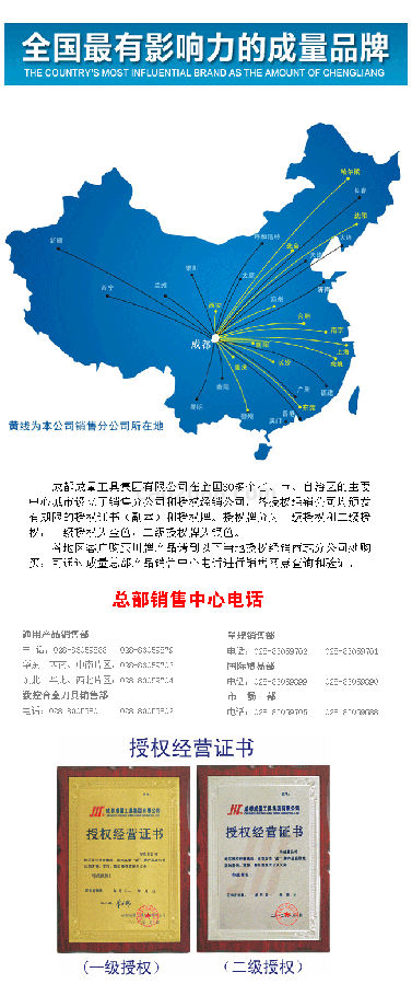 成都成量工具集团有限公司始建于1956年,是国家“一五”计划重点建设项目之一,是国家工量具重点生产企业和出口基地。现坐落在成都市新都区绕城路南一段199号,是一座占地248亩、建筑面积12.8万平房米、绿化面积4.5万多平方米的现代化企业。公司现有总资产近12亿,职工1800余名,专业的技术人员300余名,是国家高新技术企业,国家级大型骨干企业。在国内工量具行业中,企业销售规模长期居行业前列。