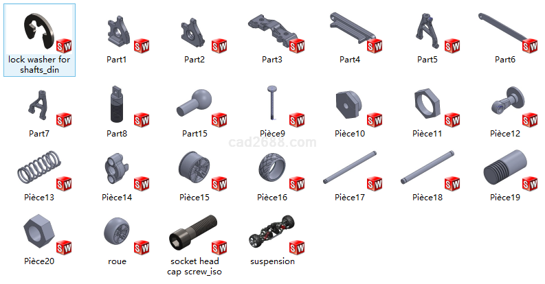 车辆悬挂系统模型Solidworks2014格式模型如下: