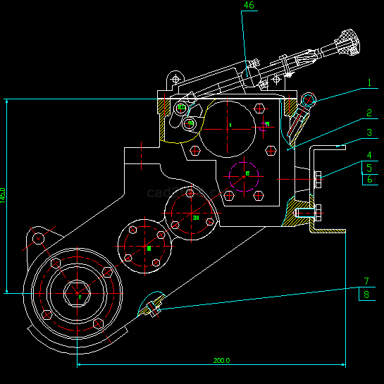 OTG-3型减速箱总成CAD图形如下: