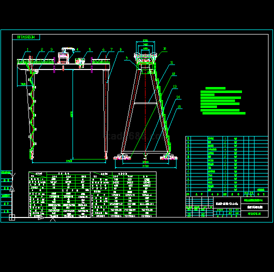 HB-60X2t+60-10t-37m-h=44m总图上下小车,空中翻身120吨,抬吊120吨,造船门式起重机CAD总图如下: