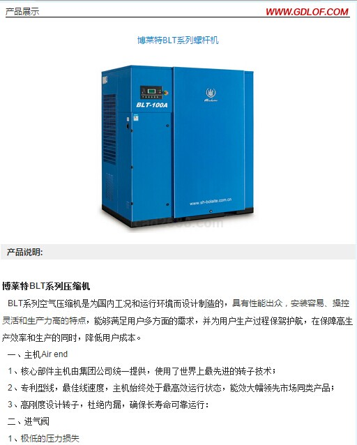 广东绿丰机电设备有限公司压缩机产品样本内容如下: