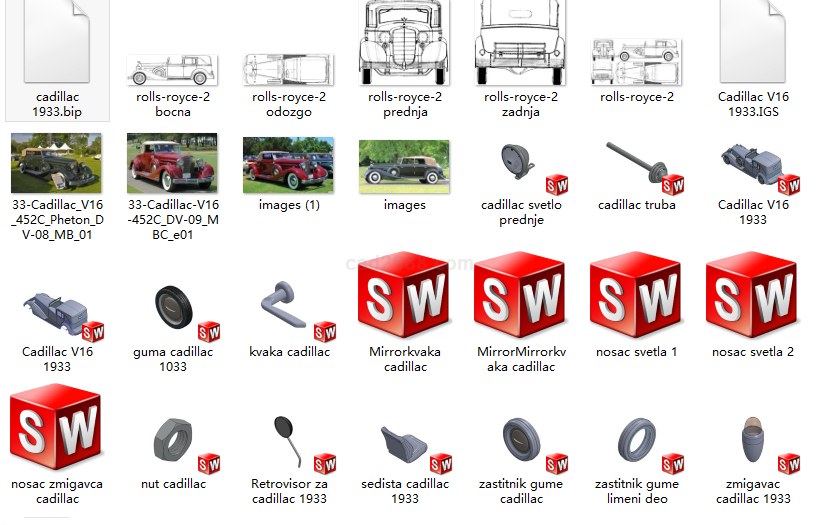 1933凯迪拉克V16辉腾模型Solidworks格式模型如下: