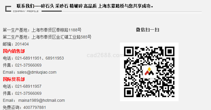 上海东蒙路桥机械有限公司(磊蒙集团)是专业从事研发及制造大型破碎筛分成套设备与工业磨粉设备的现代化高新技术企业。已通过ISO9001:2008国际质量体系认证。