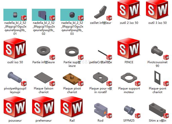 数控机床刀具夹取机械手模型Solidworks格式模型如下: