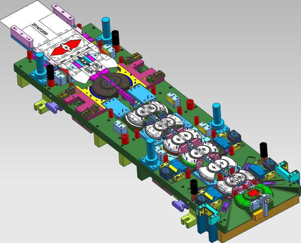 3D模型汽车车身钢板多工位级进模模型UG设计格式图形如下: