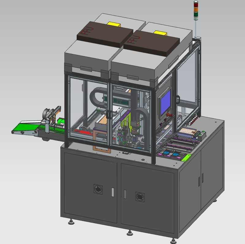 3D模型手机液晶屏与背光自动组装机模型UG设计格式图形如下: