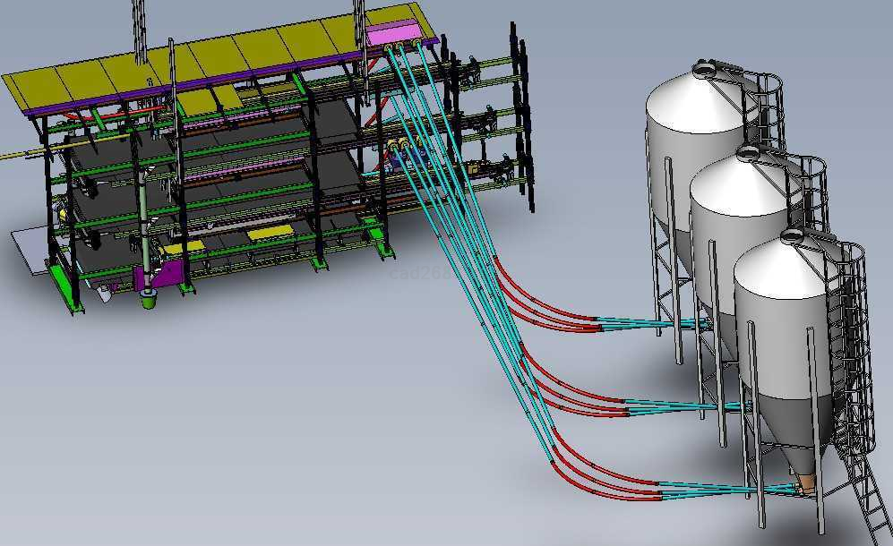 3D模型半自动化的兔场(兔舍桁架组装)Solidworks设计格式图形如下: